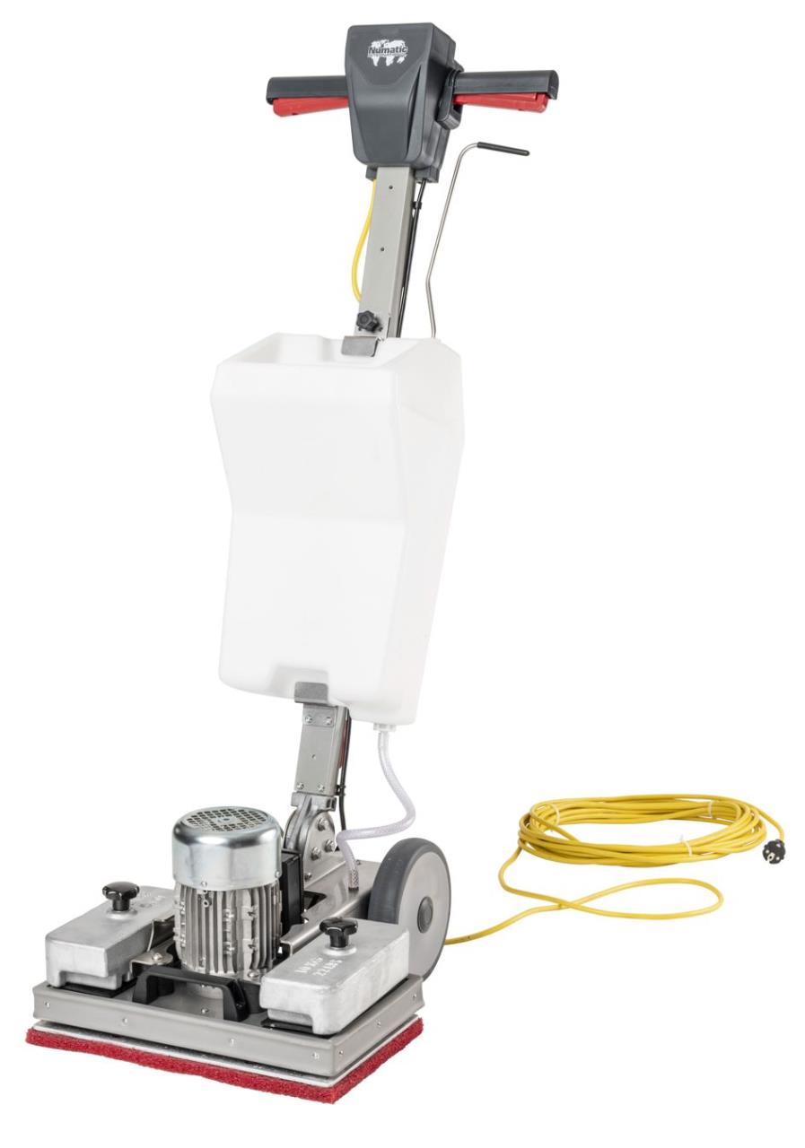 Exzentermaschine. Vielseitig einsetzbar, sehr hohe Drehzahl, grosser Anpressdruck, höhenverstellbare Deichsel, abnehmbare Gewichte (2x10 kg) inkl. Exzenter Pad rot 430x250 mm (Abbildung mit optionalem Sonderzubehör)