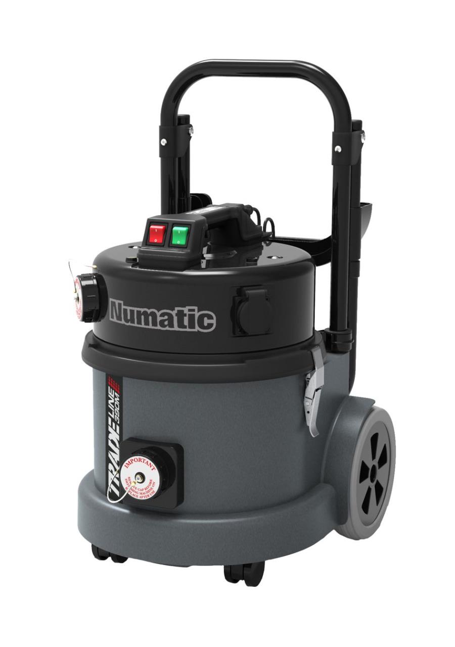 Industriestaubsauger. Für Stäube der Staubklasse M, Gerätesteckdose für Werkzeuge (max. 2200 W), klappbarer Griff zum platzsparenden Verstauen, grosse Räder für hohe Treppenstufen. Schlauchlänge 2.4 m, Zubehör 32 mm und 1 Vliesstaubbeutel