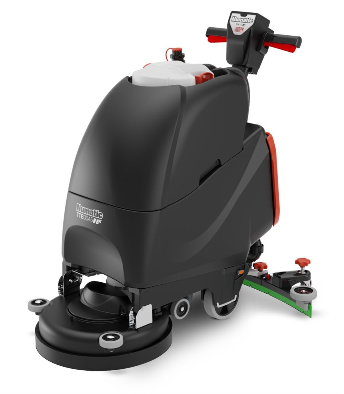 Scheuersaugmaschine Numatic. Optimal für kleine bis mittlere Flächen. Einfacher Bürsten- und Treibtellerwechsel. Rote Bedienelemente zur einfachen Handhabung und Pflege.