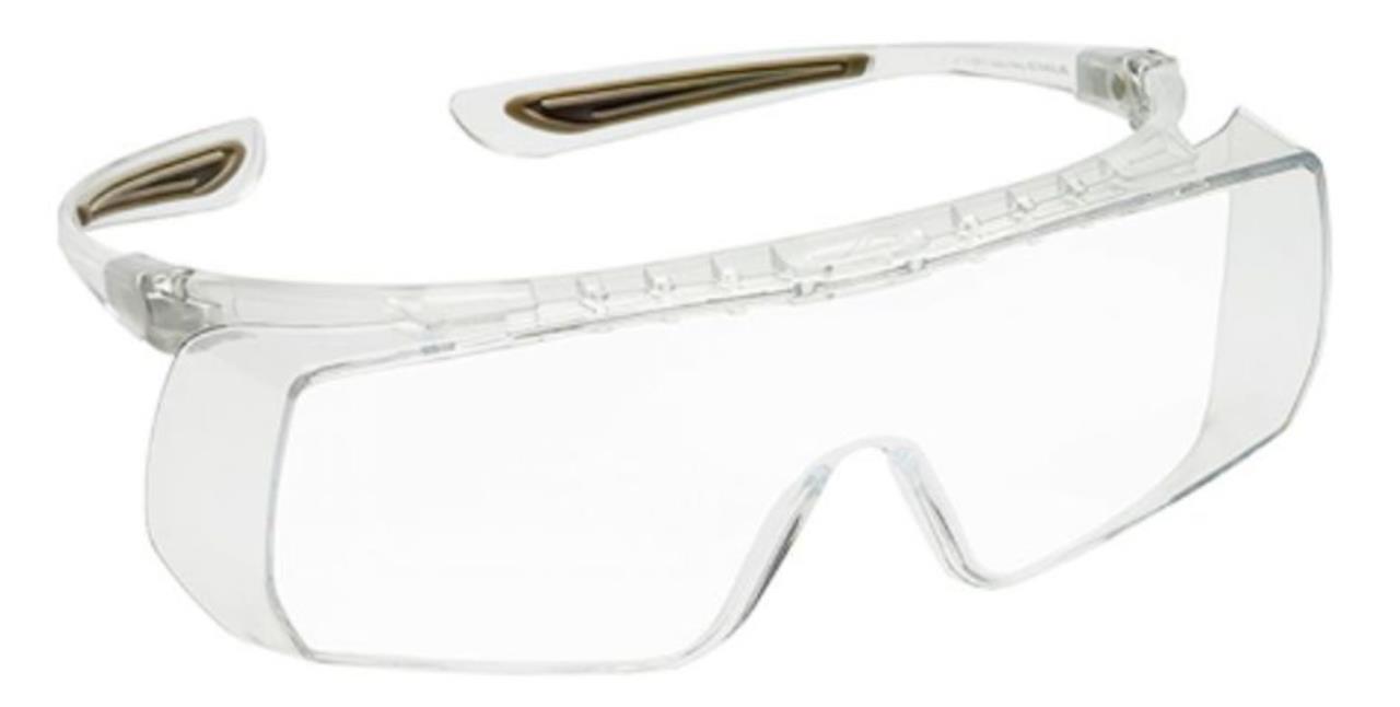 Leichte Über-Schutzbrille JSP aus farblosem, kratzfestem, beschlagfreiem Polycarbonat, Frontpartie samt Seitenschutz aus einem Stück, Augenbrauenabdeckung, verstellbare Bügelinklination, weiche Bügelenden, Universalnasensteg mit breiter Auflagefläche. Gewicht ca. 36 g.