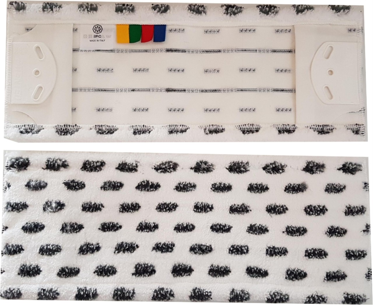 Die Kombination aus weißer kurzfloriger Mikrofaser (geeignet für jede Art von Oberfläche) und den schwarzen Schleifpunkten (zum Abreiben der hartnäckigen Flecken) gewährleistet ein hervorragendes Ergebnis bei der Entfernung selbst die schwierigsten Verschmutzungen.