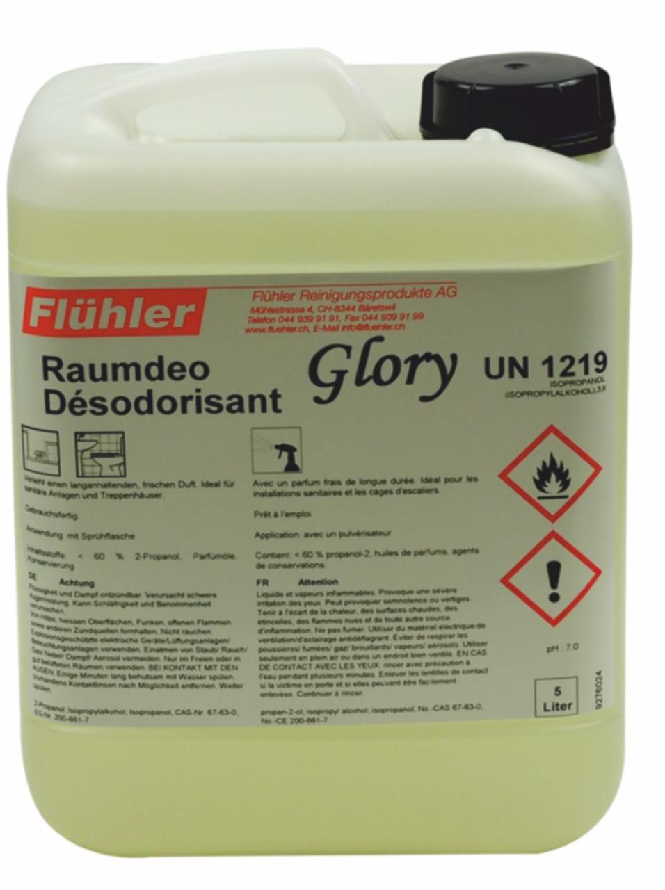 Raumdeo Glory 5 l Raumdeo GloryAllgemeiner KurzbeschriebVerleiht einen langanhaltenden, frischen Duft. Ideal für sanitäre Anlagen und Treppenhäuser.Passt zu UF36 GloryGeeignete Oberflächen-AnwendungMit Sprühflasche nach Bedarf versprühen.Geheimtipp: Kann auch dem Duftreiniger UF36 Glory als Duftverstärker beigemischt werden.DosierungGebrauchsfertigSchaumverhalten-DuftStark blumig frisch mit holziger SchlussnotepH-VOC-Gehalt50%GefahrgutzuschlagCHF 8.00 Ihr Preis CHF 87.90 exkl. MWST Artikel-Nr.: 400258A Lieferzeit: Sofort lieferbar Produktname* Bitte das Feld Produktname ausfüllen. In den Warenkorb zur Merkliste hinzufügen Downloads Produktinformationen Sicherheitsdatenblatt 1 Danke Herzlichen Dank für Ihre Kontaktaufnahme. Wir werden uns in Kürze mit Ihnen in Verbindung setzen. Schliessen
